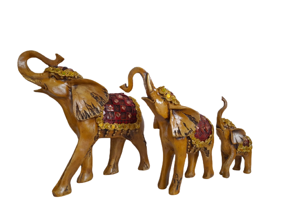 Serie Elefantes x 3 en yeso tecnica envejecido imitación madera